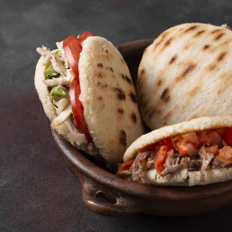 Disfruta de nuestra carta excepcional, que incluye una variedad de entradas populares como los deliciosos nachos, tostones, papas cochinas y tequeños. En el apartado de platos fuertes, podrás saborear nuestras arepas, cachapas, patacones y unas hamburguesas al estilo callejero que no te dejarán indiferente. Cada plato está elaborado con ingredientes frescos y de calidad para ofrecerte lo mejor de nuestra gastronomía.