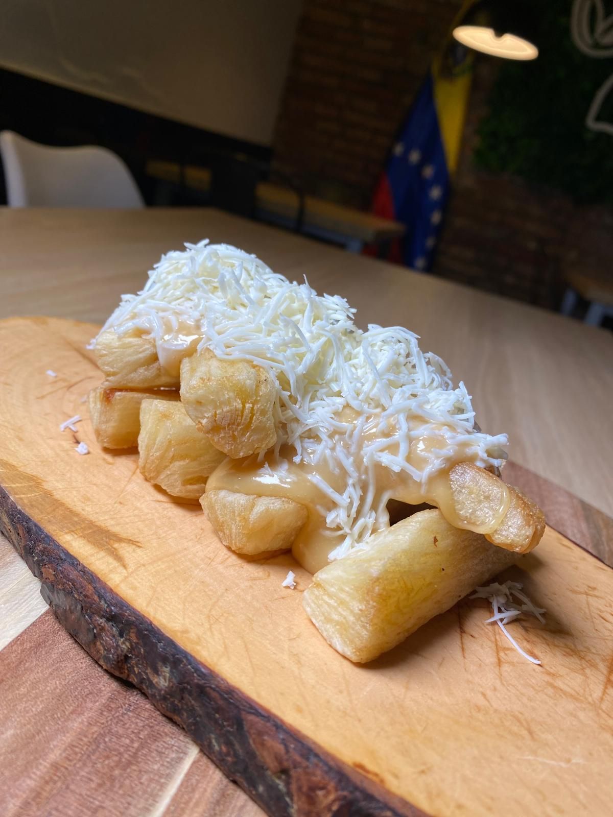 Disfruta de nuestra carta excepcional, que incluye una variedad de entradas populares como los deliciosos nachos, tostones, papas cochinas y tequeños. En el apartado de platos fuertes, podrás saborear nuestras arepas, cachapas, patacones y unas hamburguesas al estilo callejero que no te dejarán indiferente. Cada plato está elaborado con ingredientes frescos y de calidad para ofrecerte lo mejor de nuestra gastronomía.